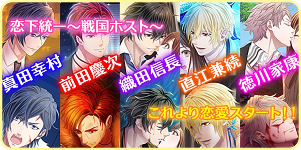 戦国時代を舞台にした恋愛シミュレーションゲームで、魅力的なホストたちと恋愛を楽しめるんだ。ストーリーがめちゃくちゃ面白いよ!